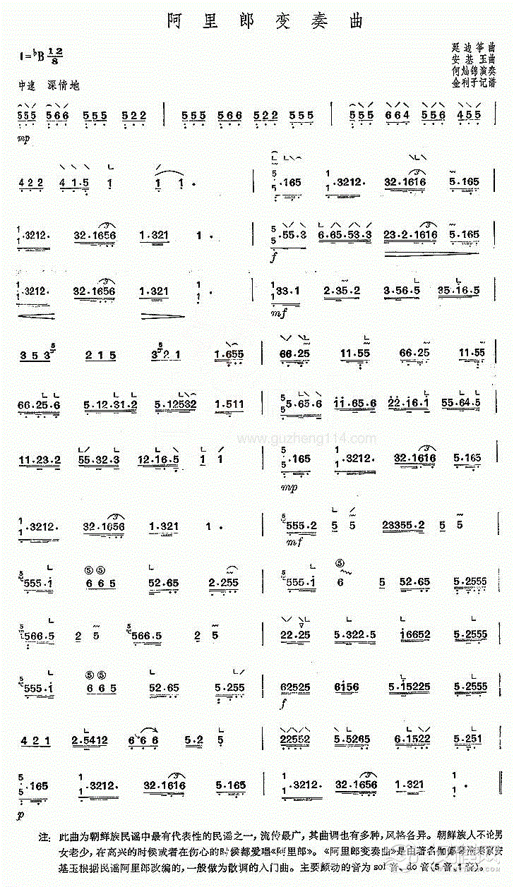 曲谱大全古筝谱【啊!我的太阳】五线谱