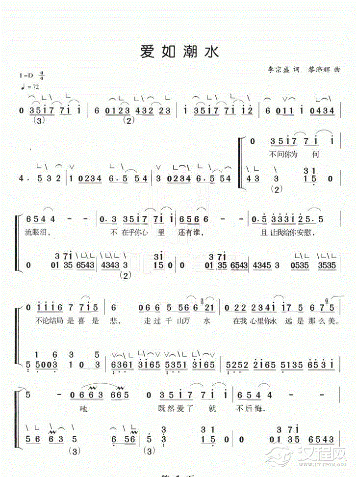 曲谱大全竹笛流行乐曲谱《水上人》左宏元 曲