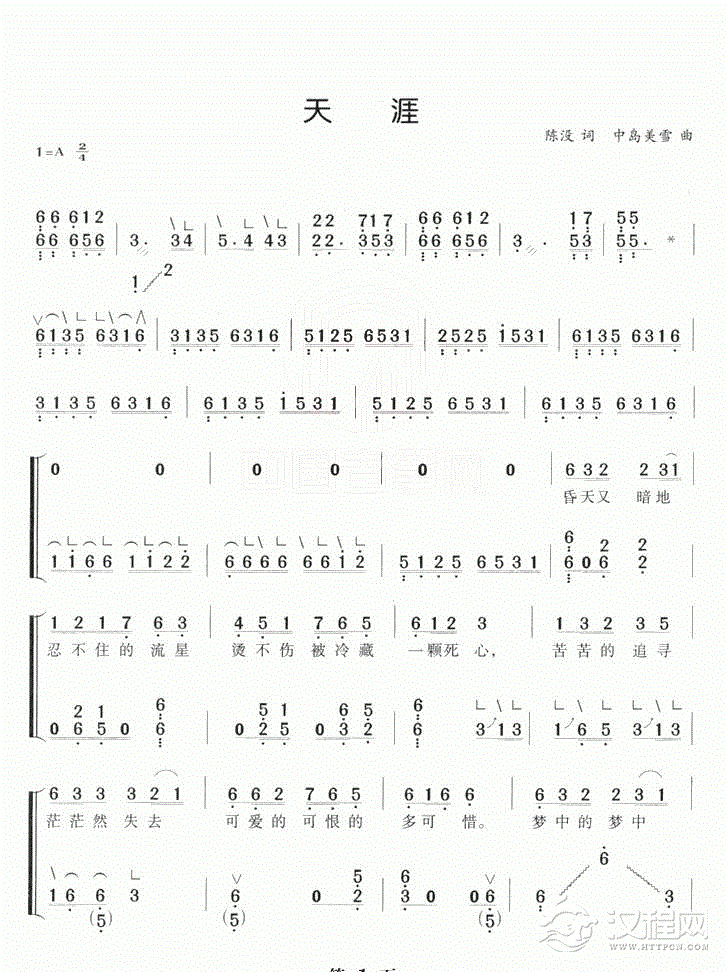 曲谱大全竹笛曲谱《望星空》简谱