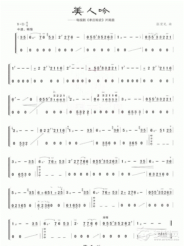 曲谱大全古筝谱【红楼梦曲】