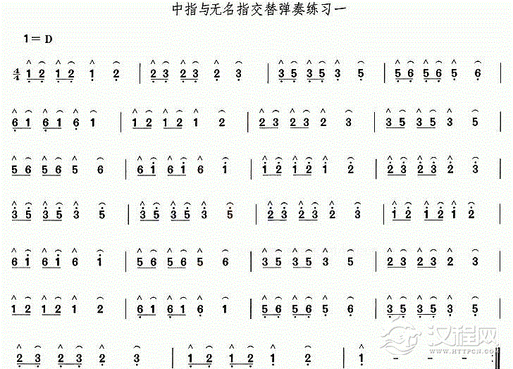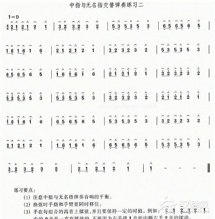 曲谱大全古筝练习曲谱【食指与中指交替练习】古筝入门指法练习谱