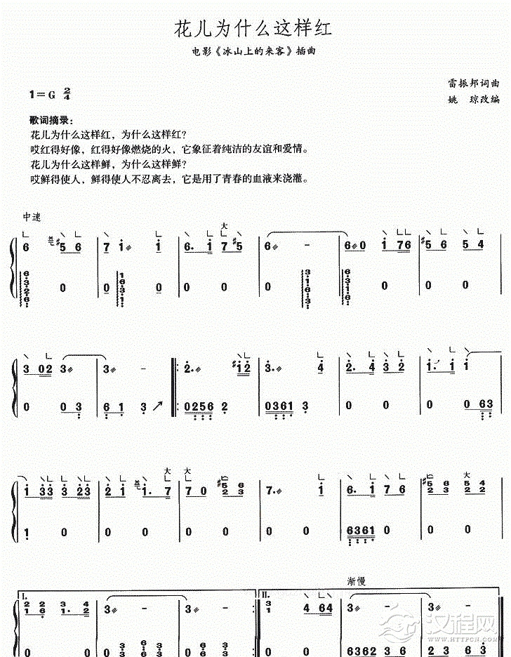 古筝谱【花儿为什么这样红】