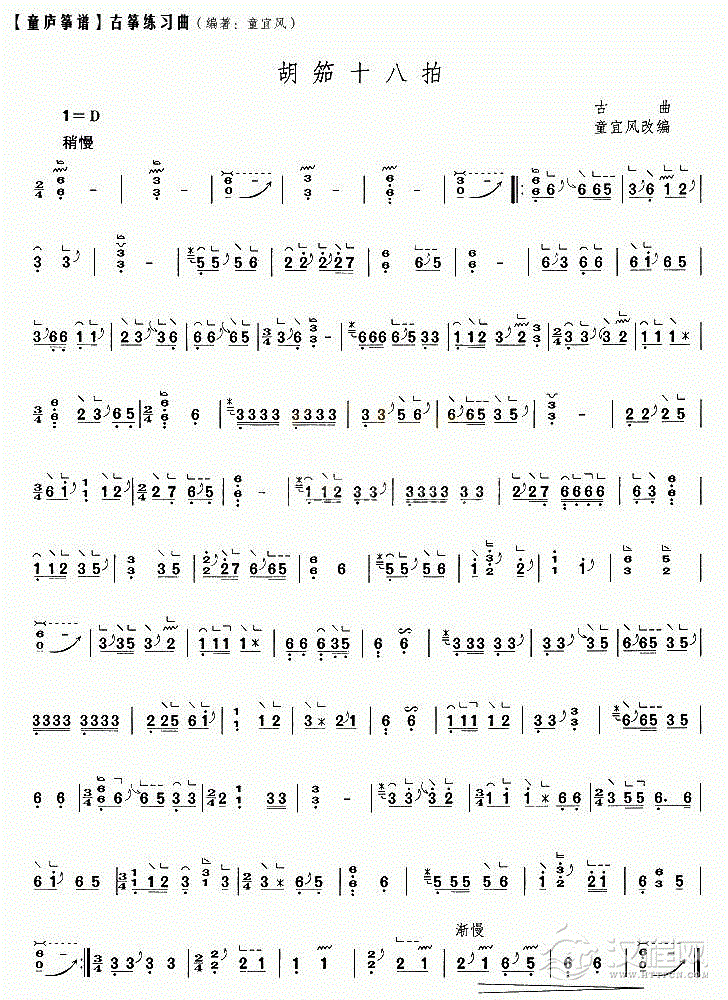 古筝谱【胡笳十八拍】