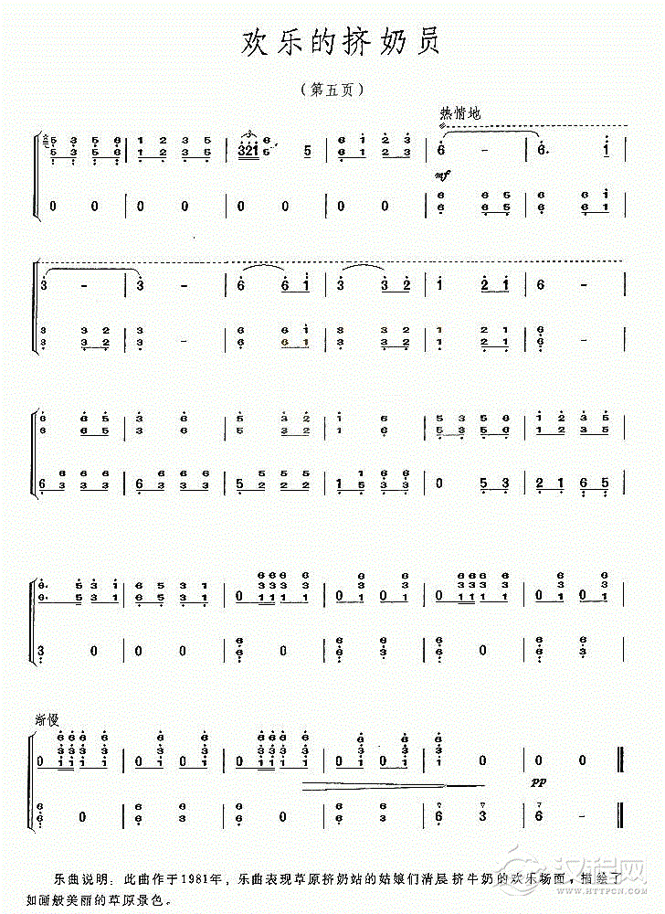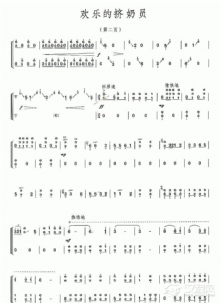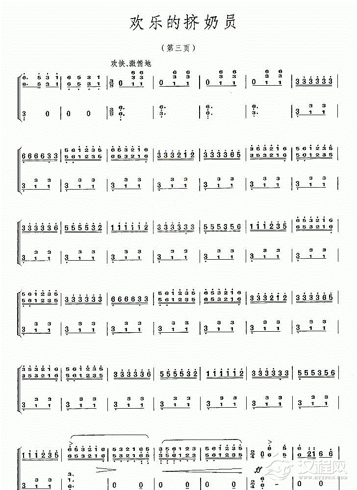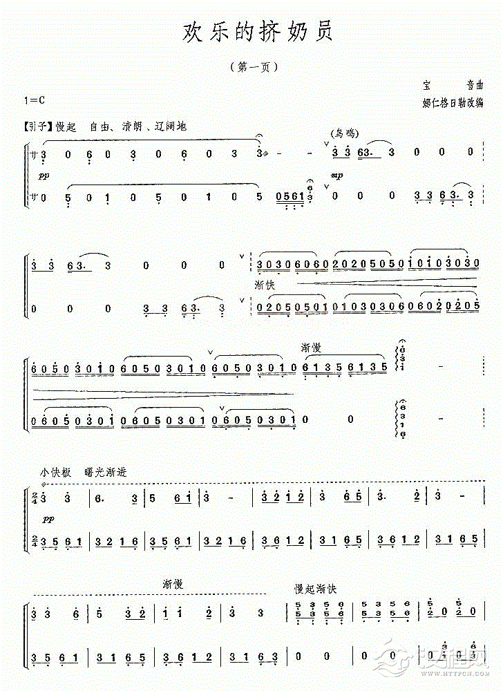古筝谱【欢乐的挤奶员】