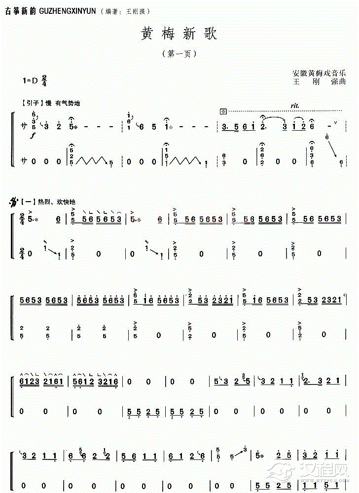 古筝谱【黄梅新歌】