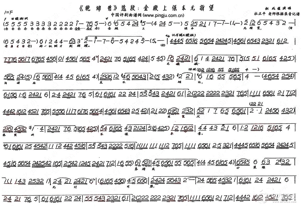 戏曲曲谱评剧《三节烈》选段﹕张春莲跪大堂2