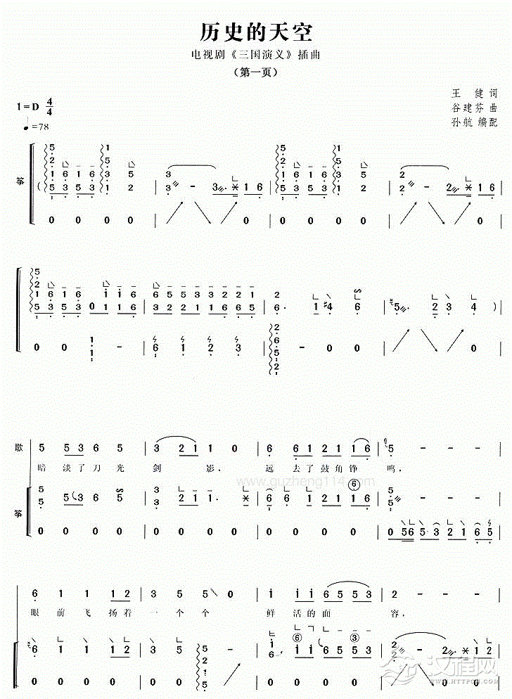 古筝谱【历史的天空】