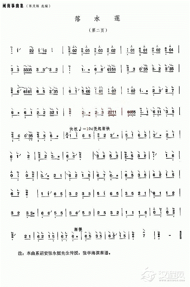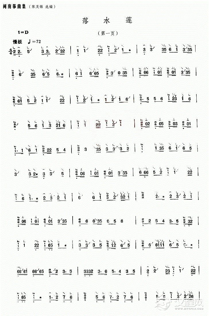 古筝谱【落水莲】闽南筝曲集