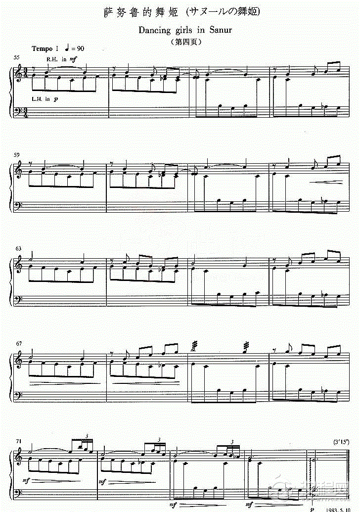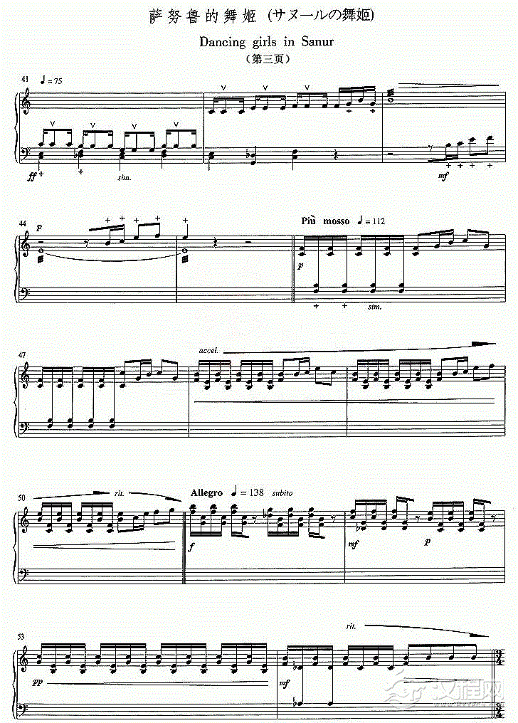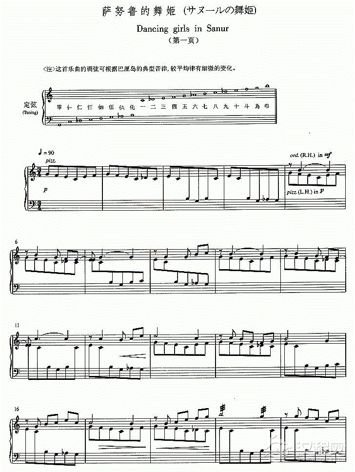 古筝谱【萨努鲁的舞姬】五线谱