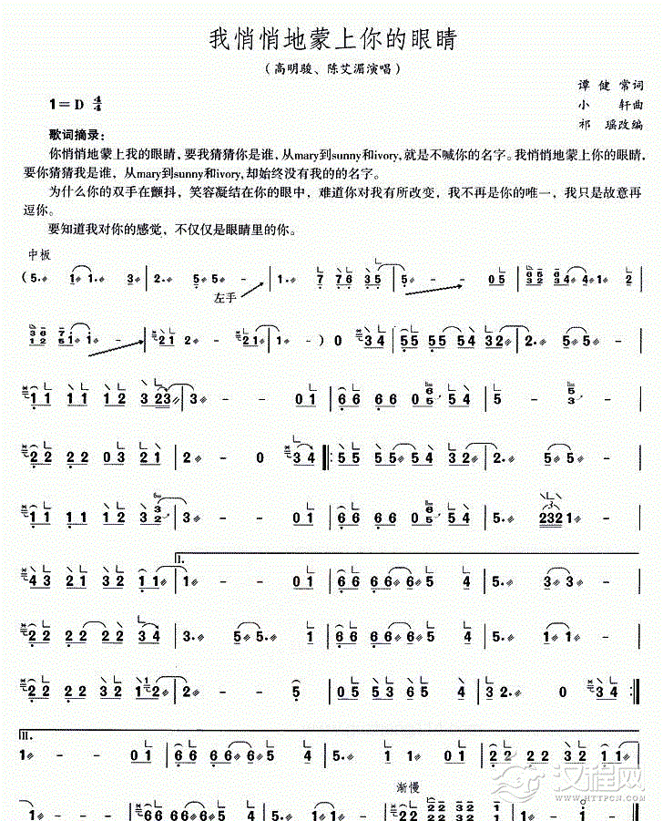 古筝谱【我悄悄地蒙上你的眼睛】
