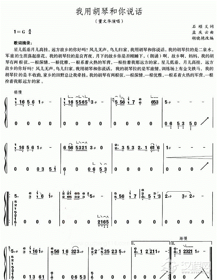 古筝谱【我用胡琴和你说话】