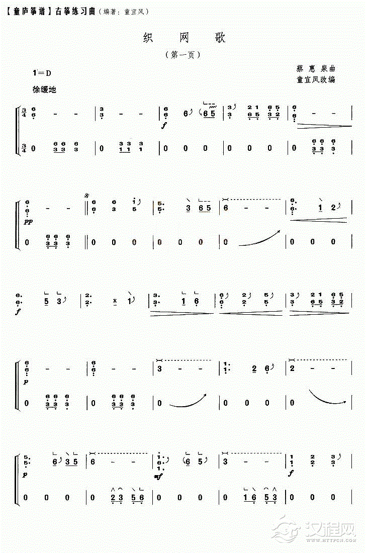 曲谱大全古筝谱【雨潇潇】五线谱