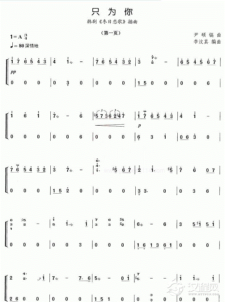 曲谱大全竹笛流行乐曲谱《情人》刀郎 曲
