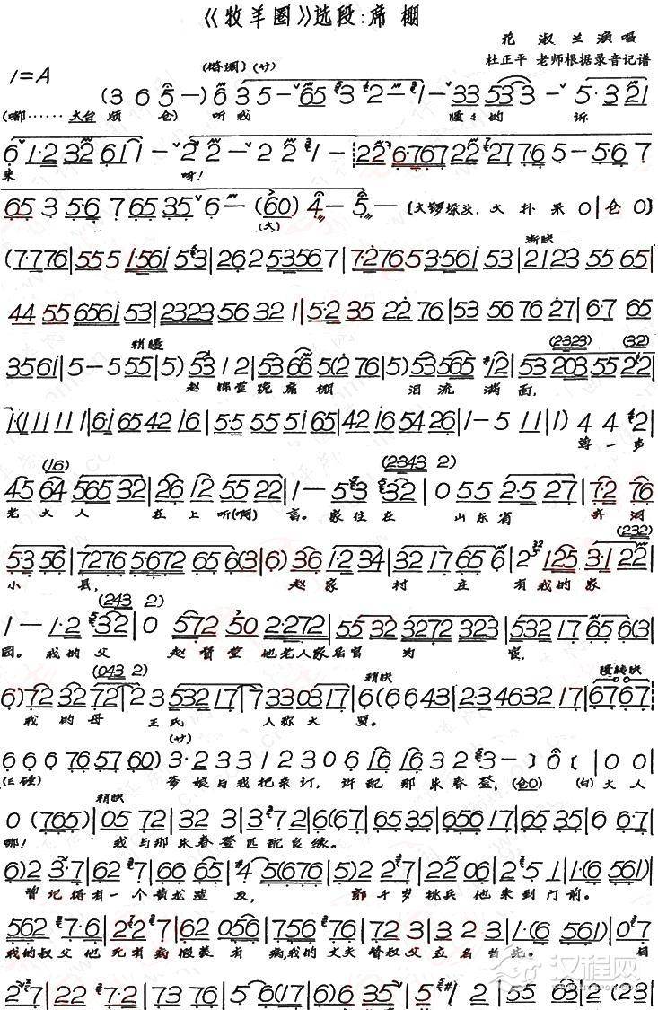戏曲曲谱评剧《牧羊圈》选段﹕席棚2