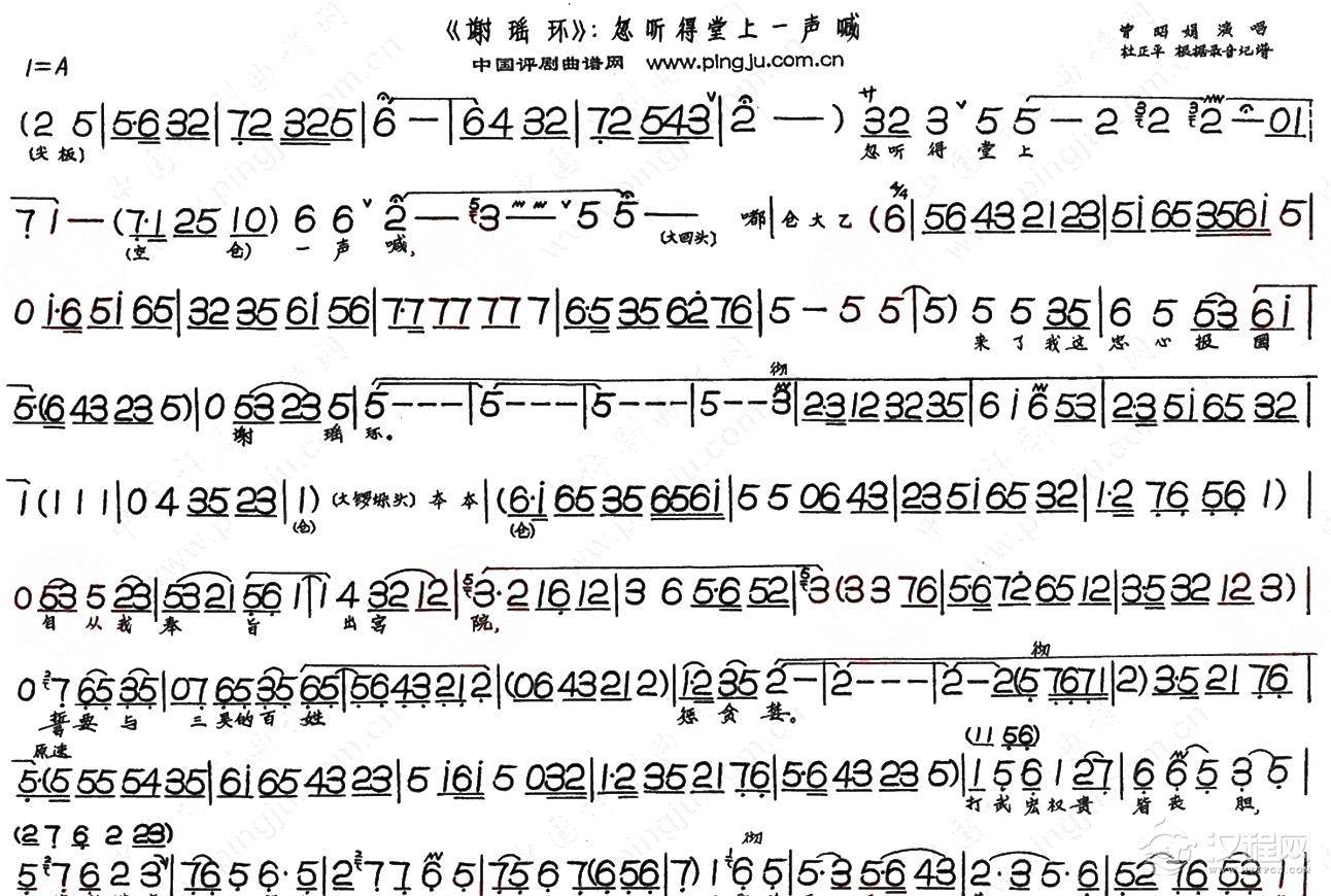 戏曲曲谱评剧(谢瑶环)选段﹕忽听堂上一声喊2