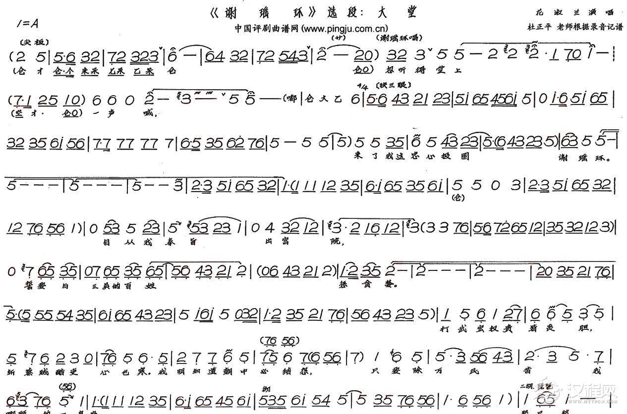 戏曲曲谱评剧(谢瑶环)选段﹕大堂2