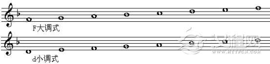 以及F调中的大调式和小调式(F大调式和d小调式)。
