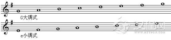 G调中的大调式和小调式(G大调式和e小调式):