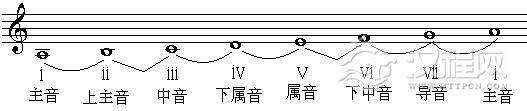 音级名称:主音 上主音 中音 下属音 属音 下中音 导音