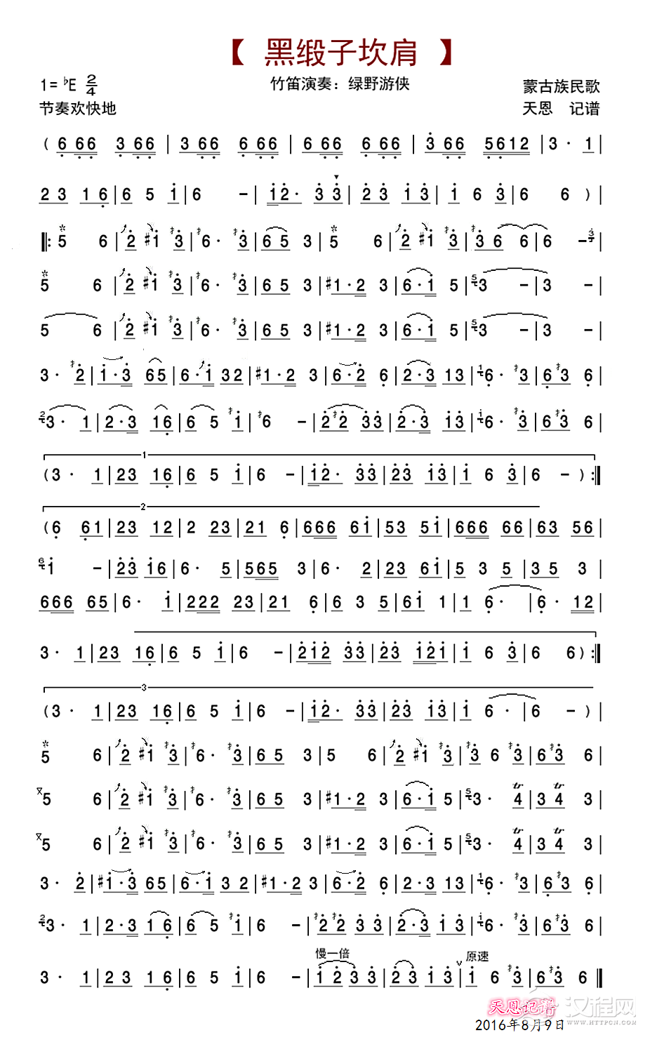 曲谱大全笛箫八级考级曲目:赛马会上