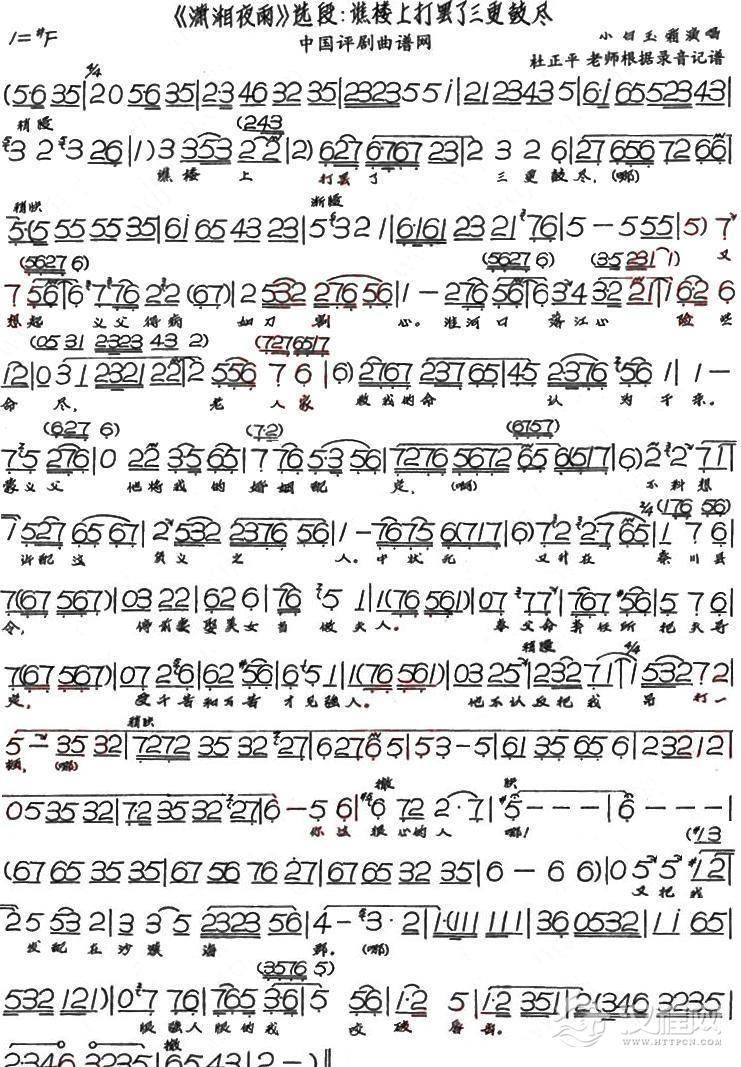 戏曲曲谱评剧《潇湘夜雨》选段﹕听谯楼打罢了一更时分