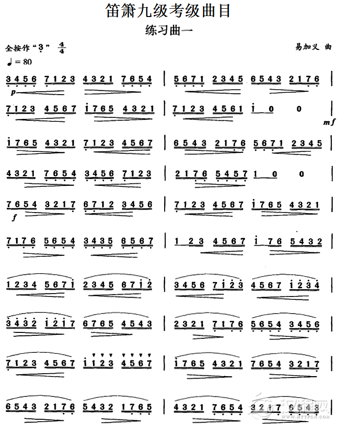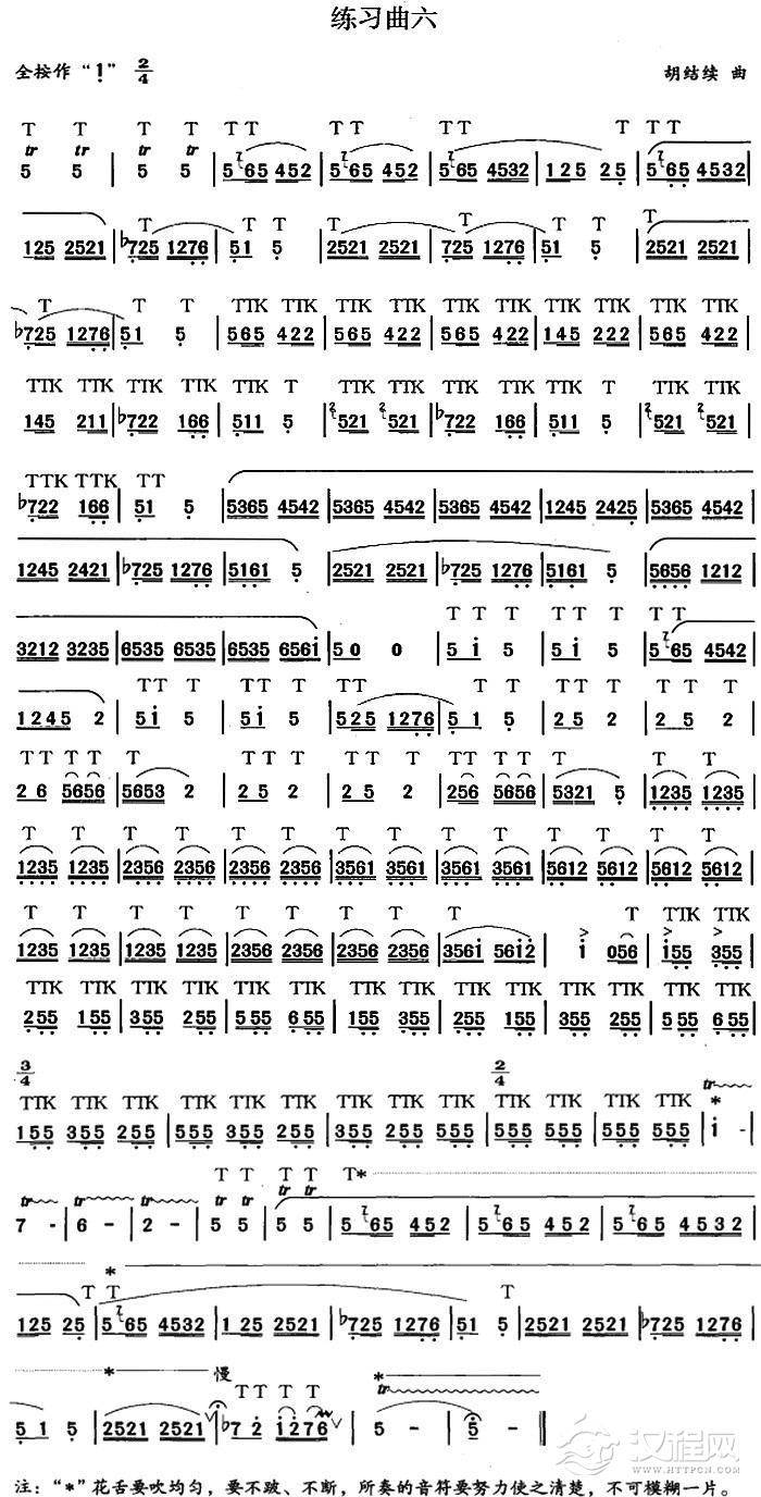 笛箫九级考级曲目:练习曲(1——6)