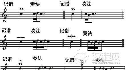 来表示。该记号要由主要音快速进入上方相邻的音两次然后再回到主要音上。