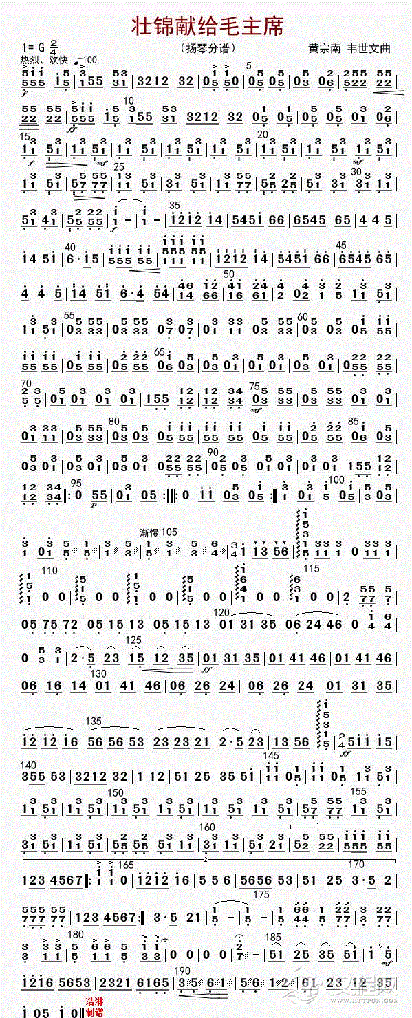 壮锦献给毛主席(扬琴分谱)
