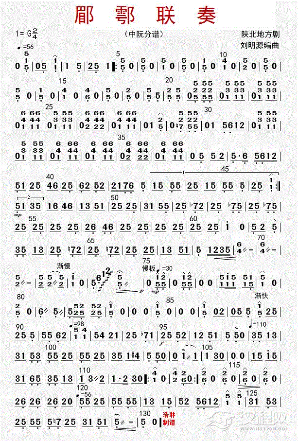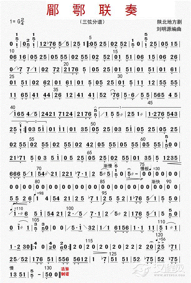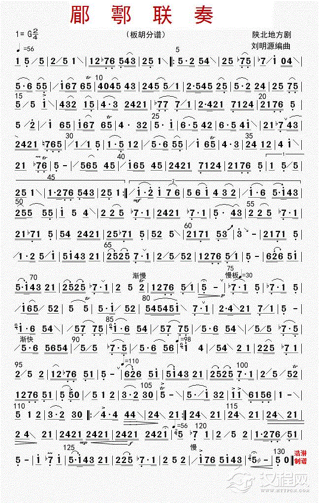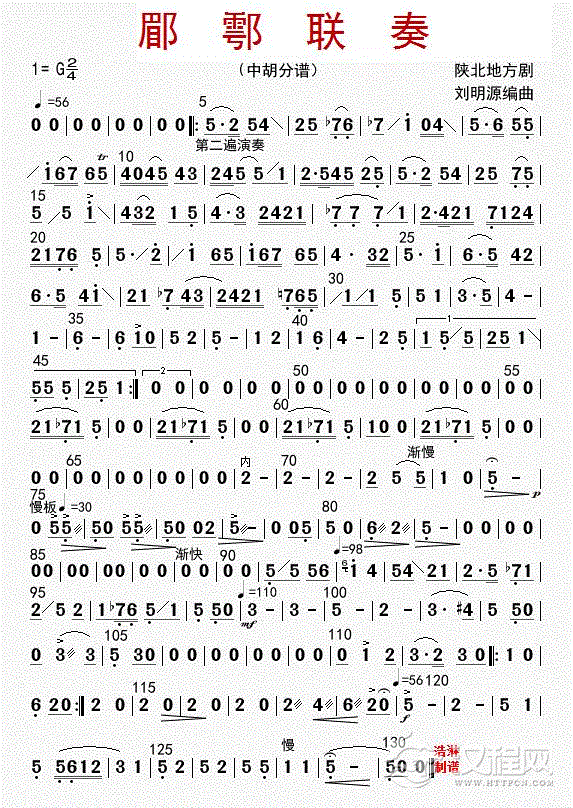 曲谱大全翻身歌(二胡独奏、小小张制谱版)