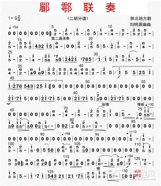 曲谱大全送你一支玫瑰花(民乐合奏二胡分谱)