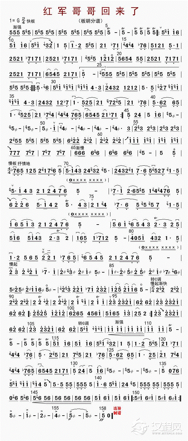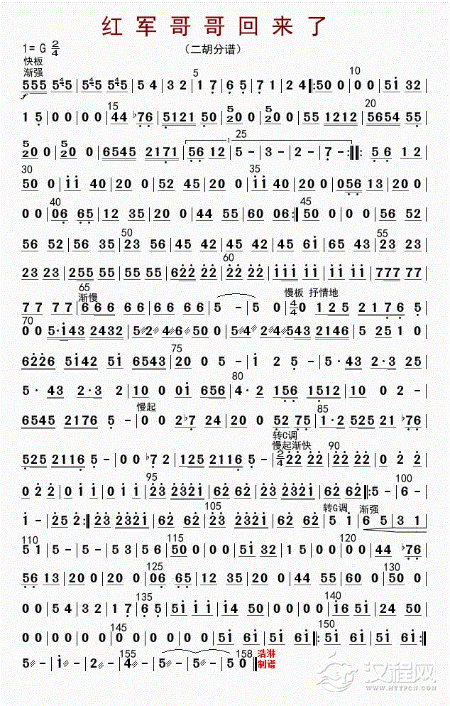 曲谱大全翻身歌(二胡独奏、小小张制谱版)