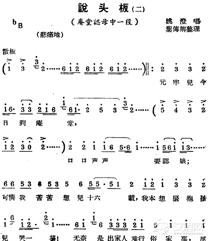 戏曲曲谱[锡剧曲调]大陆板(六)(选自《庵堂认母》插曲)