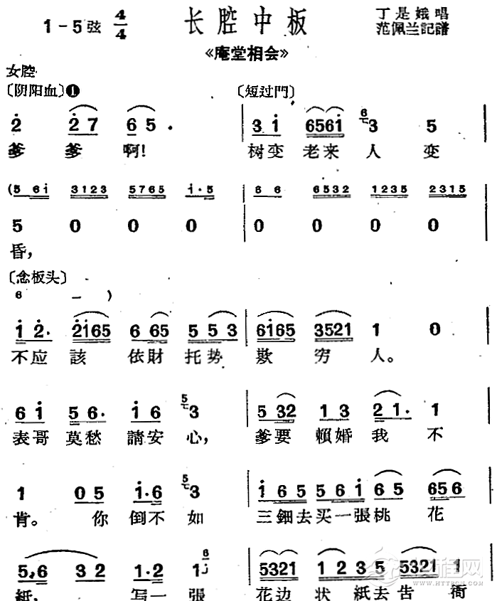 戏曲曲谱[沪剧曲调]长腔中板(选自《庵堂相会》男女对唱)