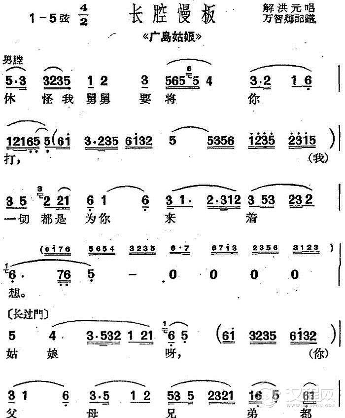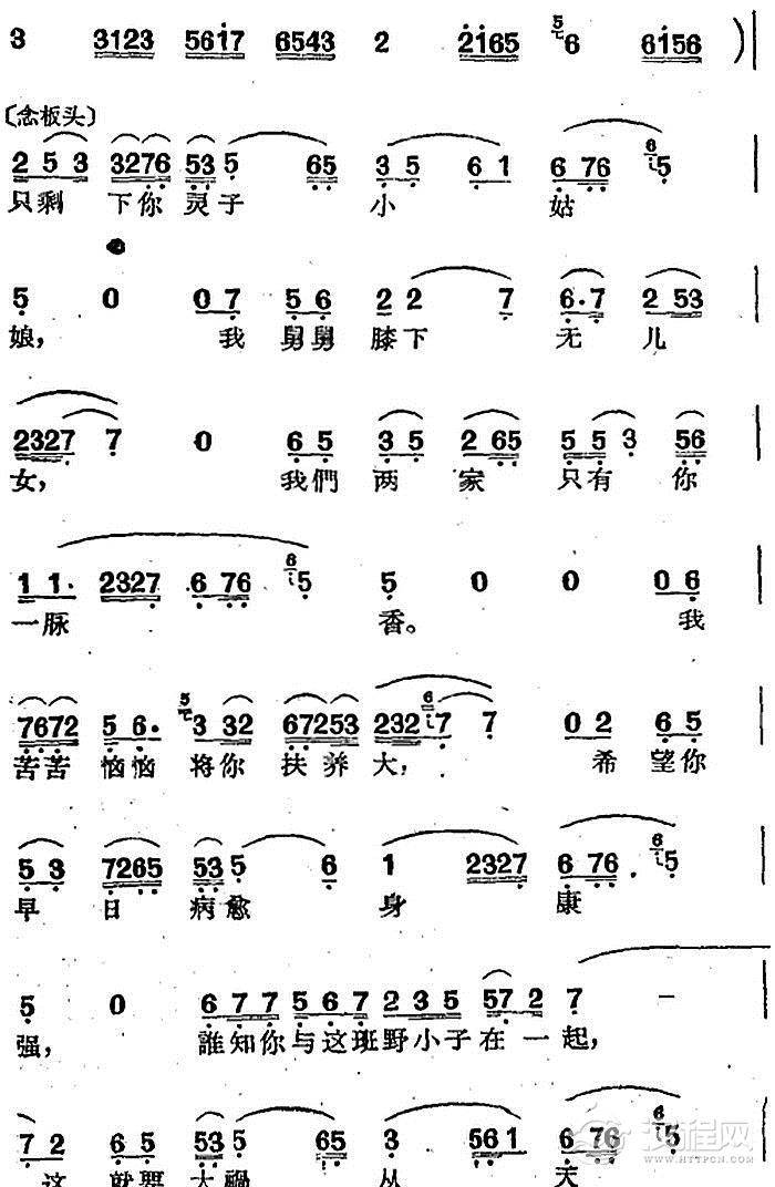 戏曲曲谱[沪剧曲调]长腔慢中板(选自《刘智远敲更》)