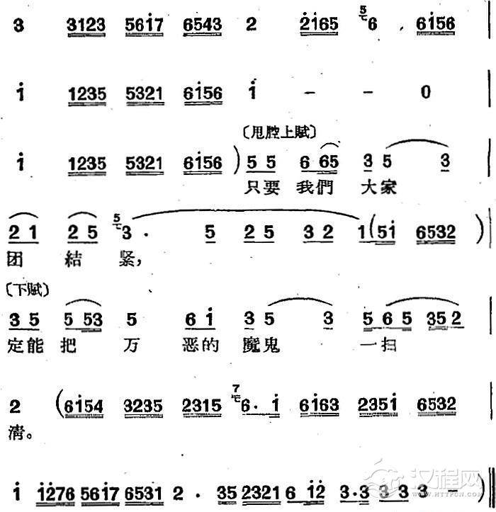 戏曲曲谱[沪剧曲调]号子(选自《嘉陵江英雄歌》男声领唱、男女齐唱)