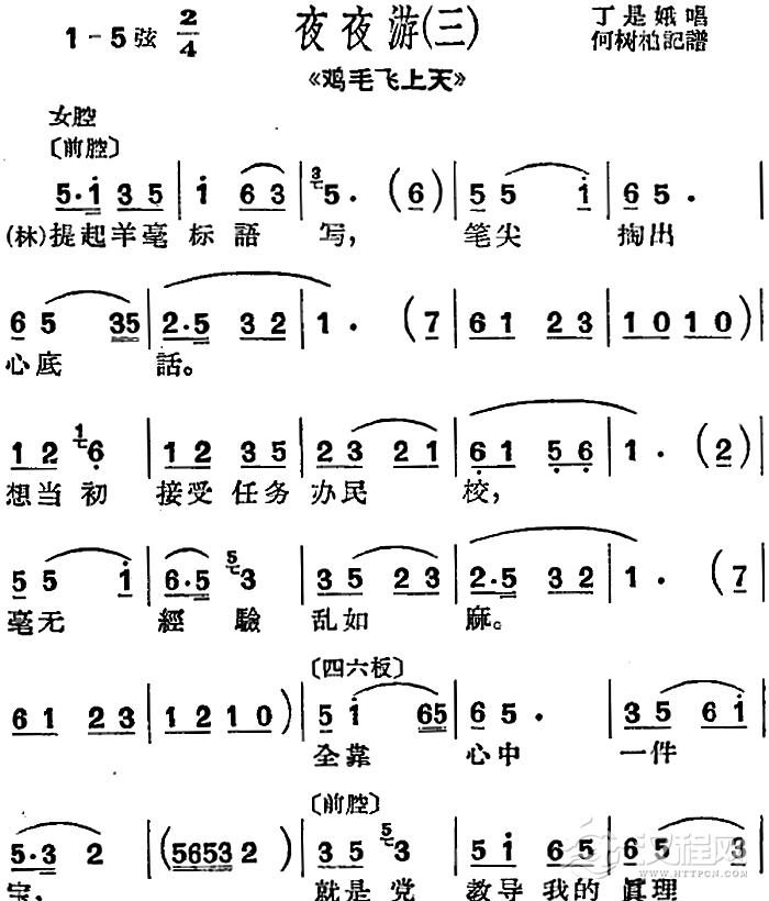 戏曲曲谱[沪剧曲调]夜夜游(选自《母亲》)