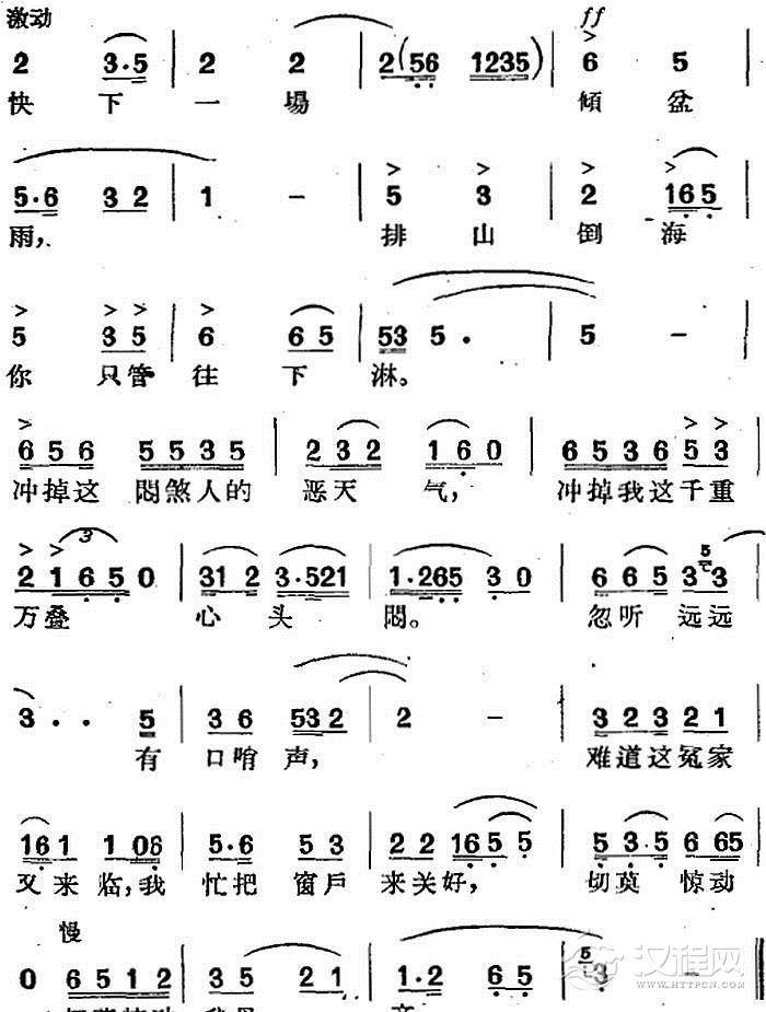戏曲曲谱[沪剧曲调]长腔慢中板(选自《刘智远敲更》)