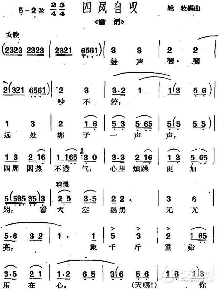 戏曲曲谱[沪剧曲调]长腔慢中板(选自《陶福增休妻》)