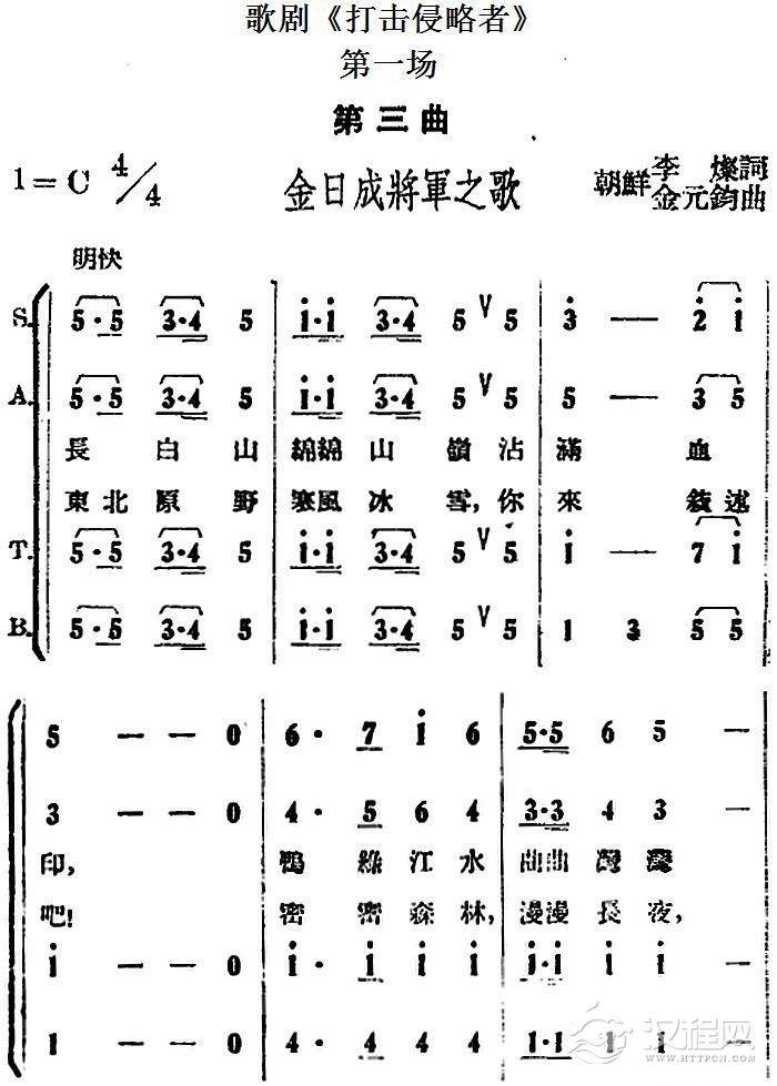 戏曲曲谱歌剧《打击侵略者》全剧之第一场 第二曲 (中国人民志愿军战歌)