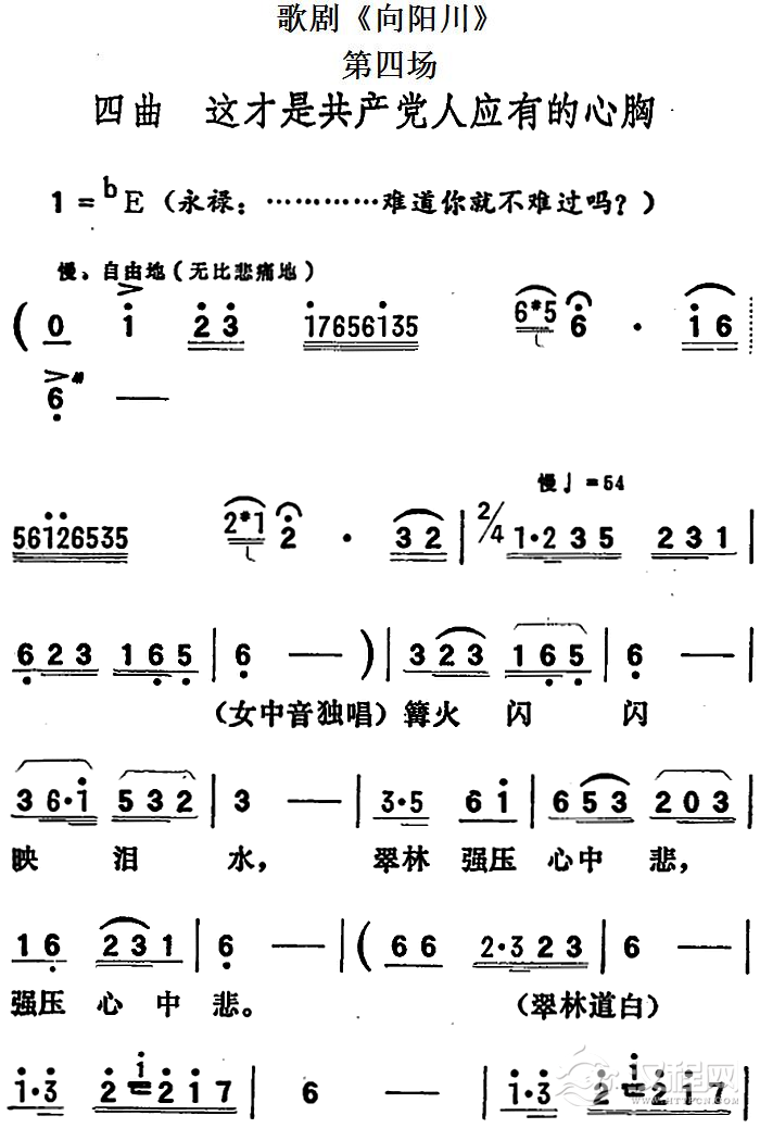 戏曲曲谱歌剧《向阳川》全剧之第五场 五曲(悲壮的赞歌盖水声)