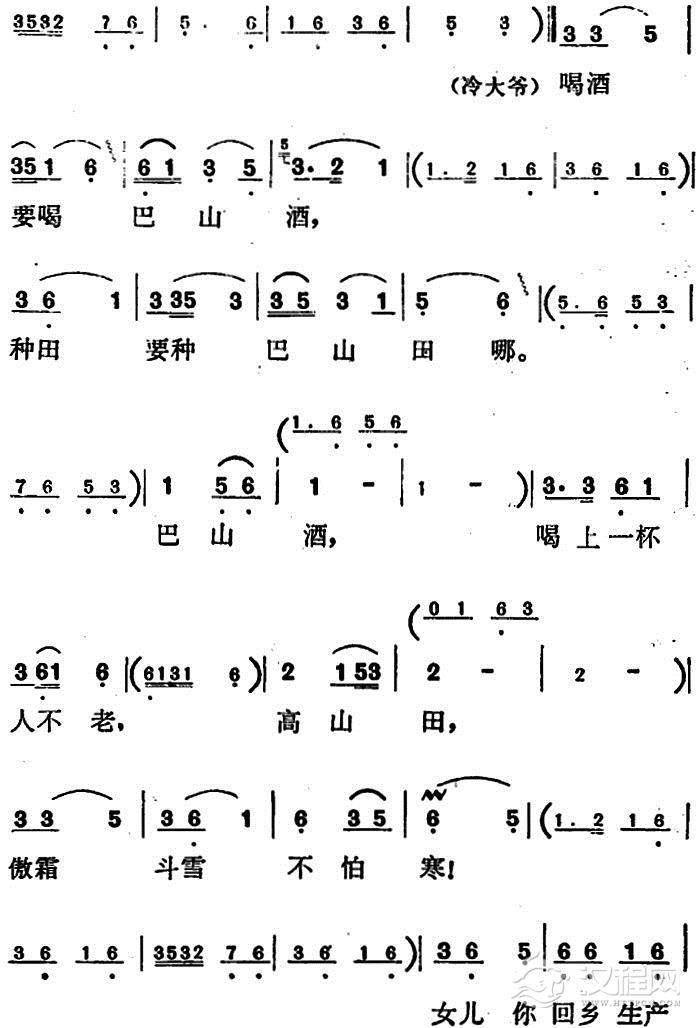 戏曲曲谱歌剧《向阳川》全剧之第四场 六曲(常大伯上场后的伴奏音乐)