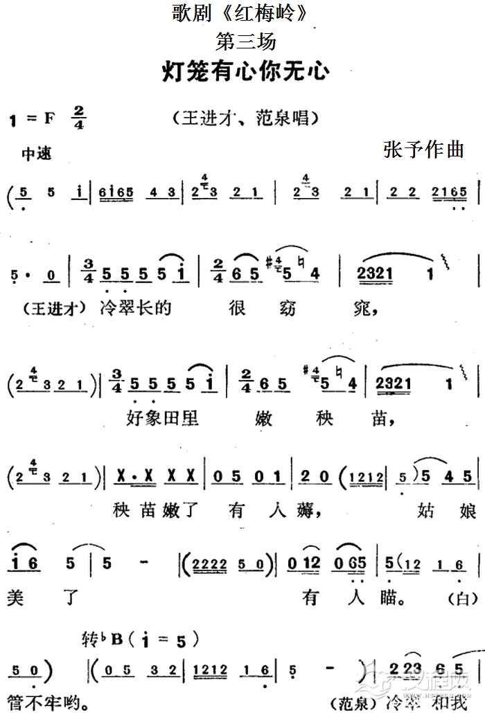 戏曲曲谱歌剧《红梅岭》全剧之第三场(我老汉不把外财爱)