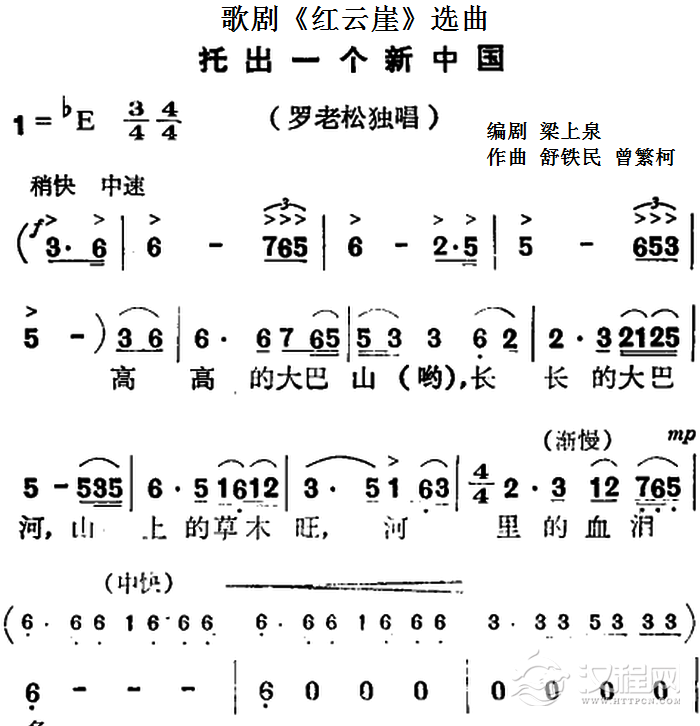 戏曲曲谱歌剧《红梅岭》全剧之第四场(山歌、三娃子唱段)