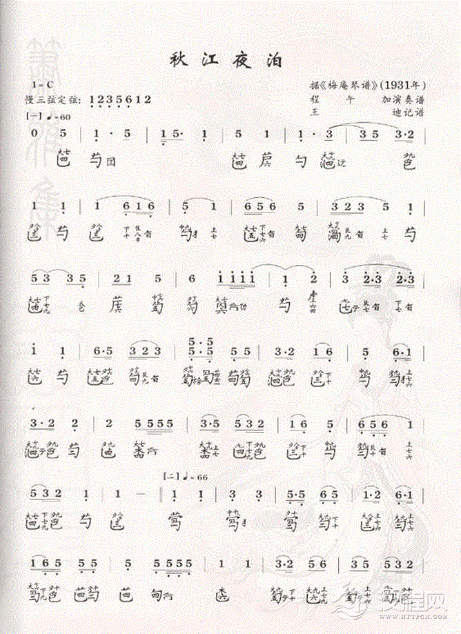 曲谱大全古琴名曲【秋风词】图片谱及曲目介绍