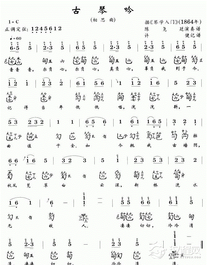 古琴名曲【古琴吟】高清图片谱及曲目介绍