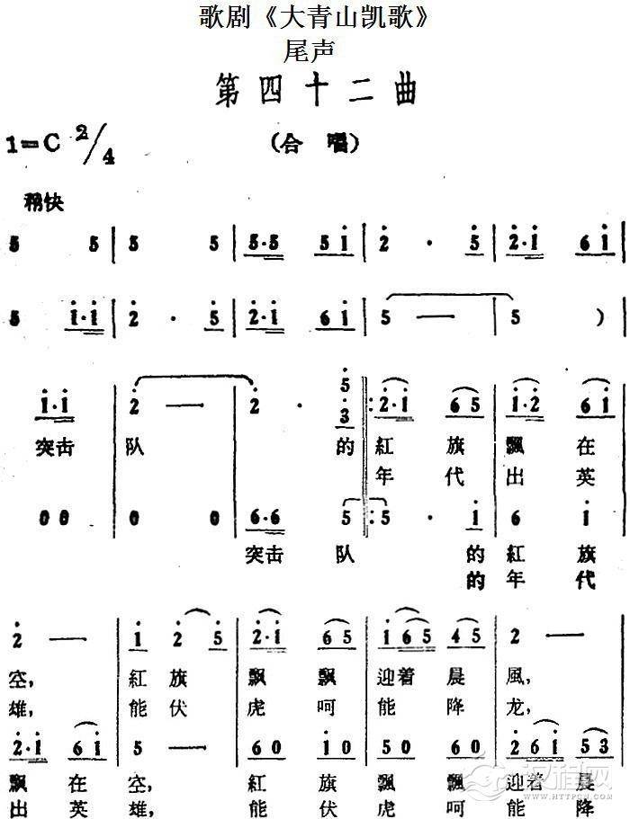 戏曲曲谱歌剧《红云崖》选曲:家乡呵,家乡