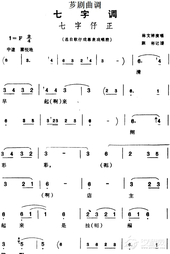 戏曲曲谱[芗剧曲调]七字仔调(选自歌仔戏幕表戏唱腔)