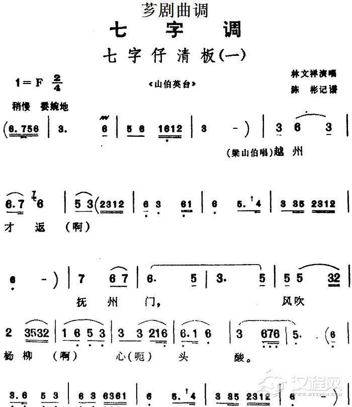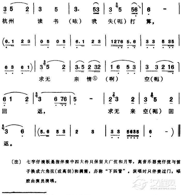 戏曲曲谱[芗剧曲调]七字仔高腔(二)(选自《陈三五娘》)