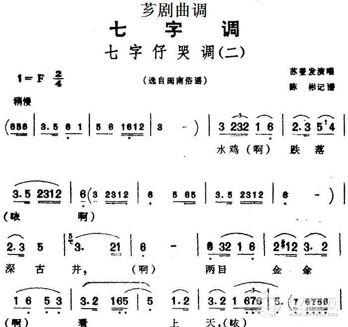 戏曲曲谱[芗剧曲调]七字仔哭调(一)(选自台湾歌仔戏《运河奇案》唱腔)