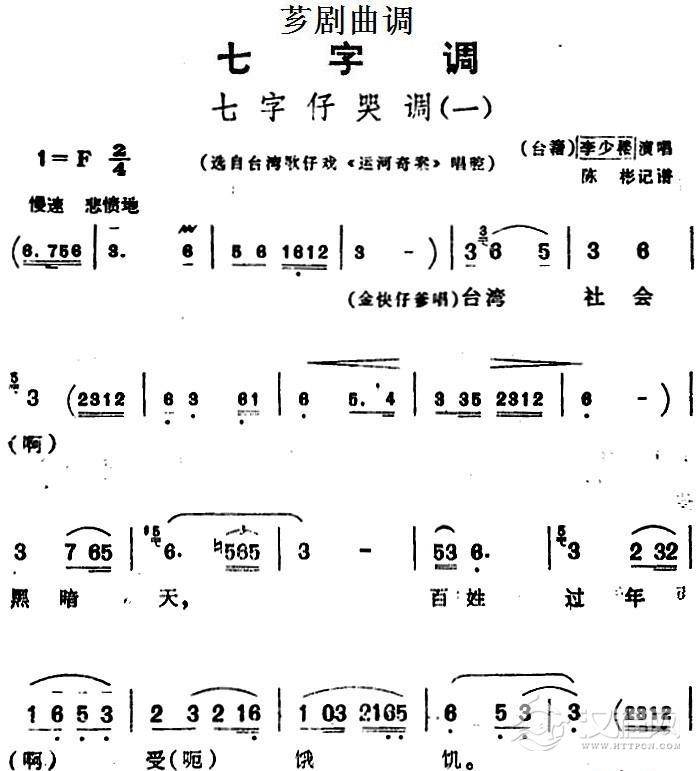 戏曲曲谱[芗剧曲调]七字仔哭调(二)(选自闽南俗谣)